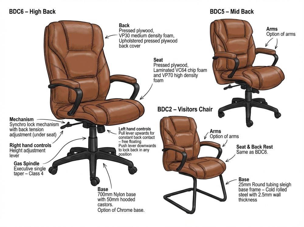 Seat: Pressed plywood. Laminated VC64 chip foam and VP70 high density foam.