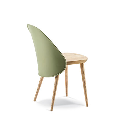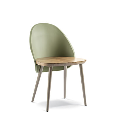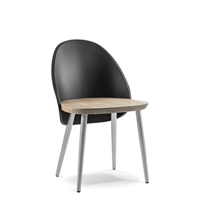 Chair with Polyprop backrest and solid Ash timber seat. Choice of solid Ash timber legs or, tapered (swaged) steel tube legs epoxy coating in choice of 25 colours.