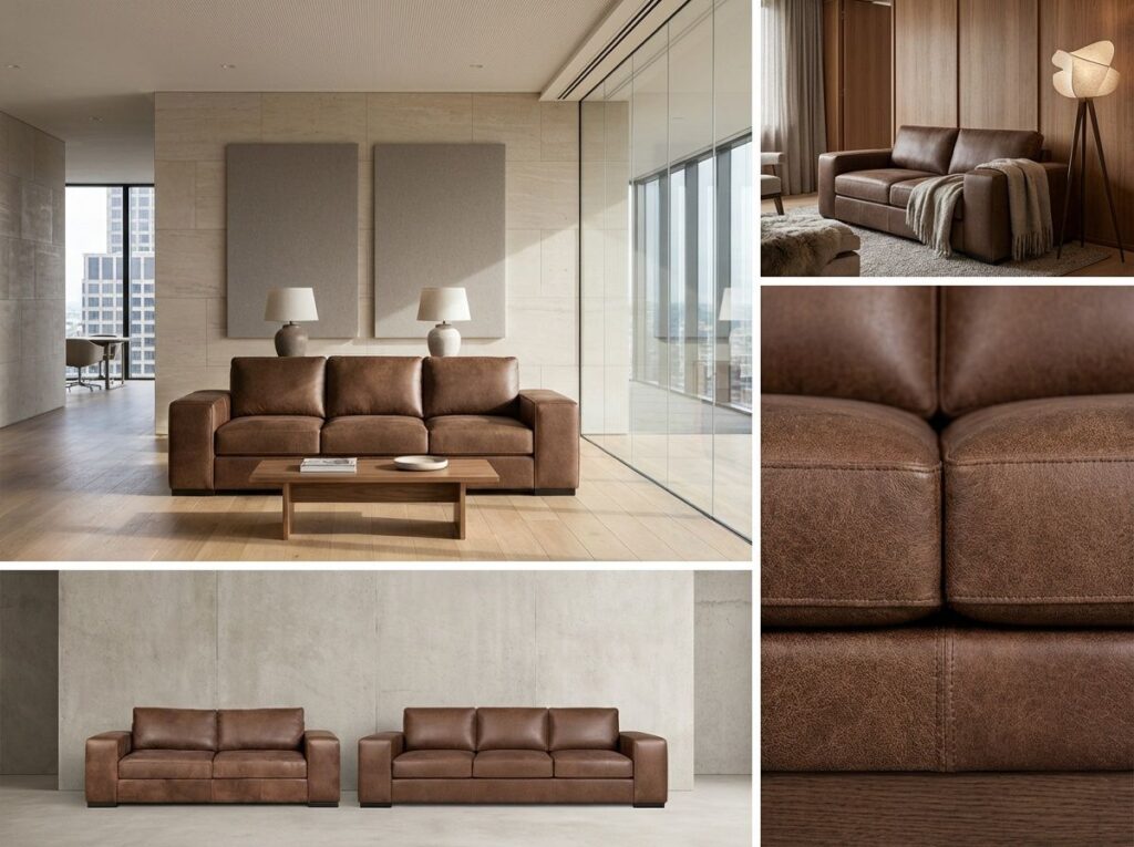- Upholstered in genuine full leather or premium fabrics