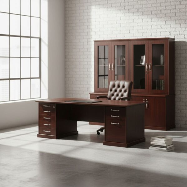 Veneer 32 x 25 solid edge top. Executive Double Pedestal Desk