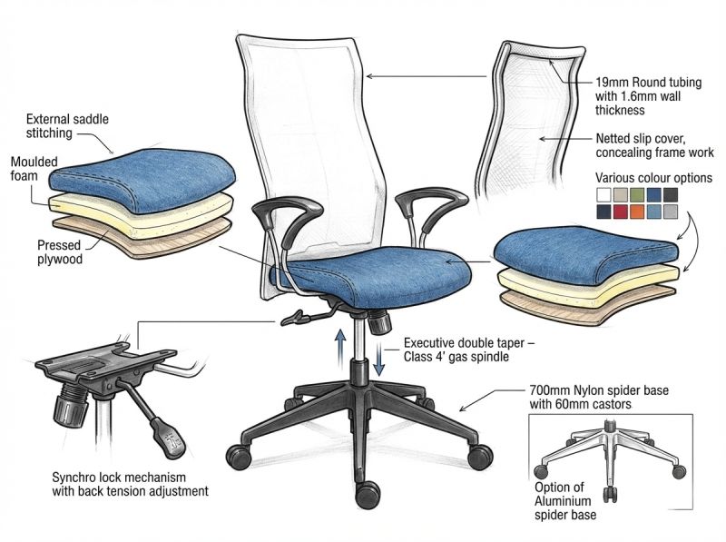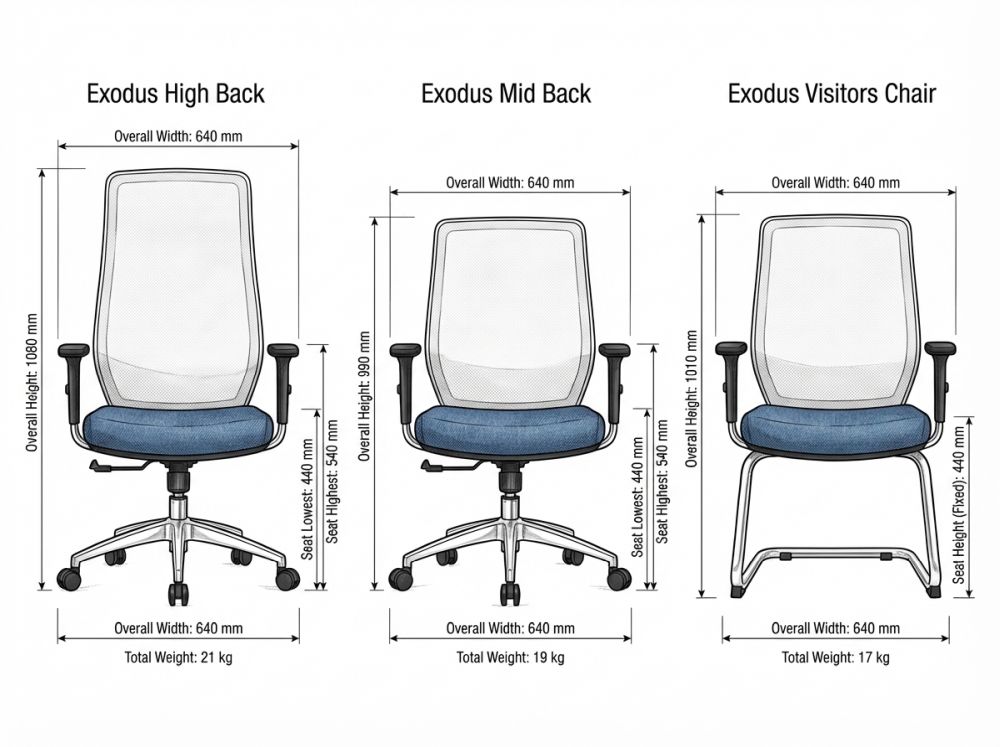 | Chair Type | High Back, Mid Back, Visitors |