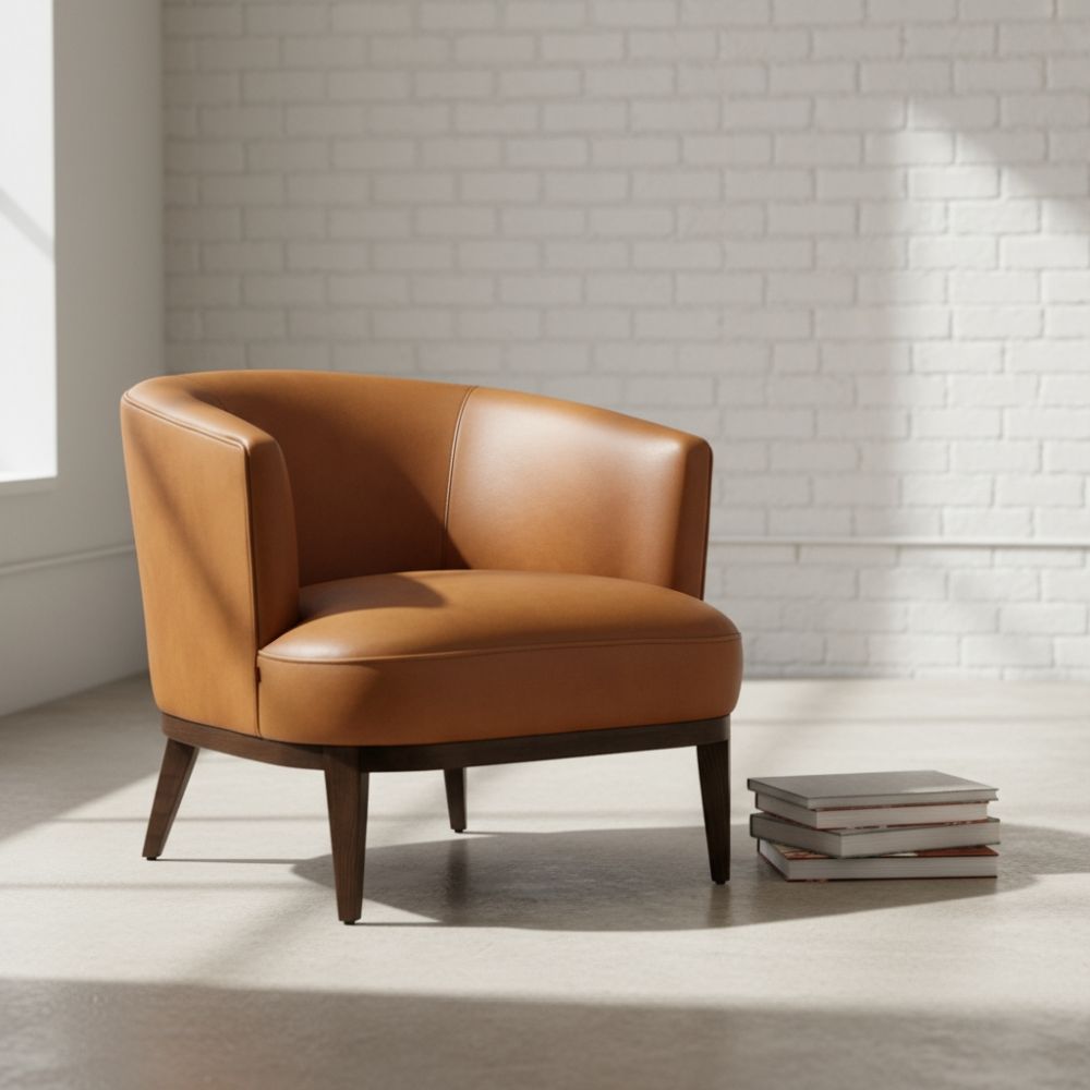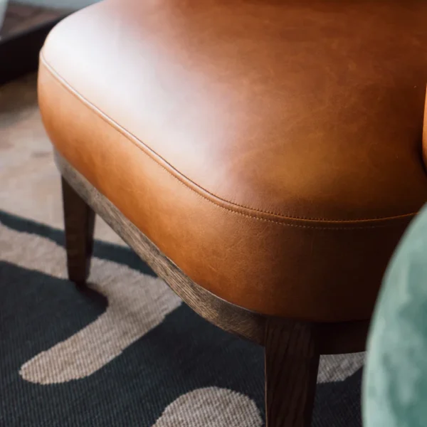 The sturdy wooden legs in a dark finish complement the warm tones of the leather, adding a touch of modern elegance to any living room, study, or office space. With its compact yet comfortable design, the Induduma Chair fits seamlessly into a variety of interior aesthetics, from modern to transitional.