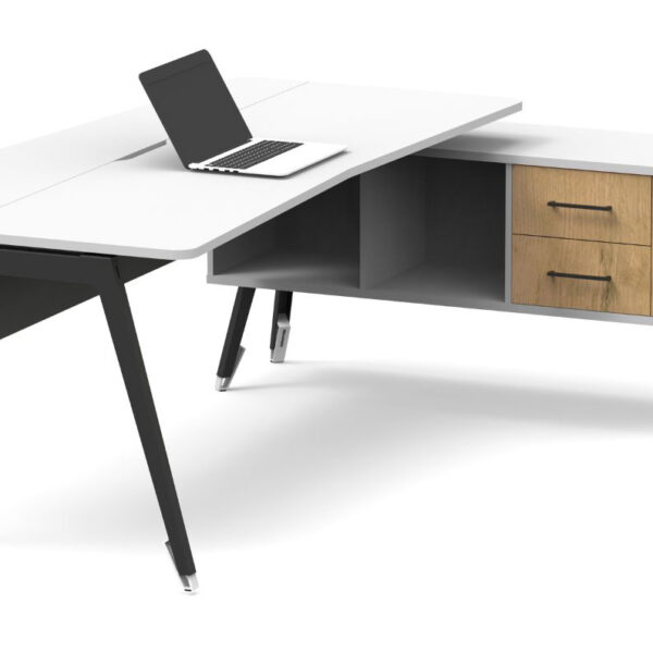 With a two-tone desk, modesty panel and the Mada leg, this executive workstation provides a modern and streamlined design