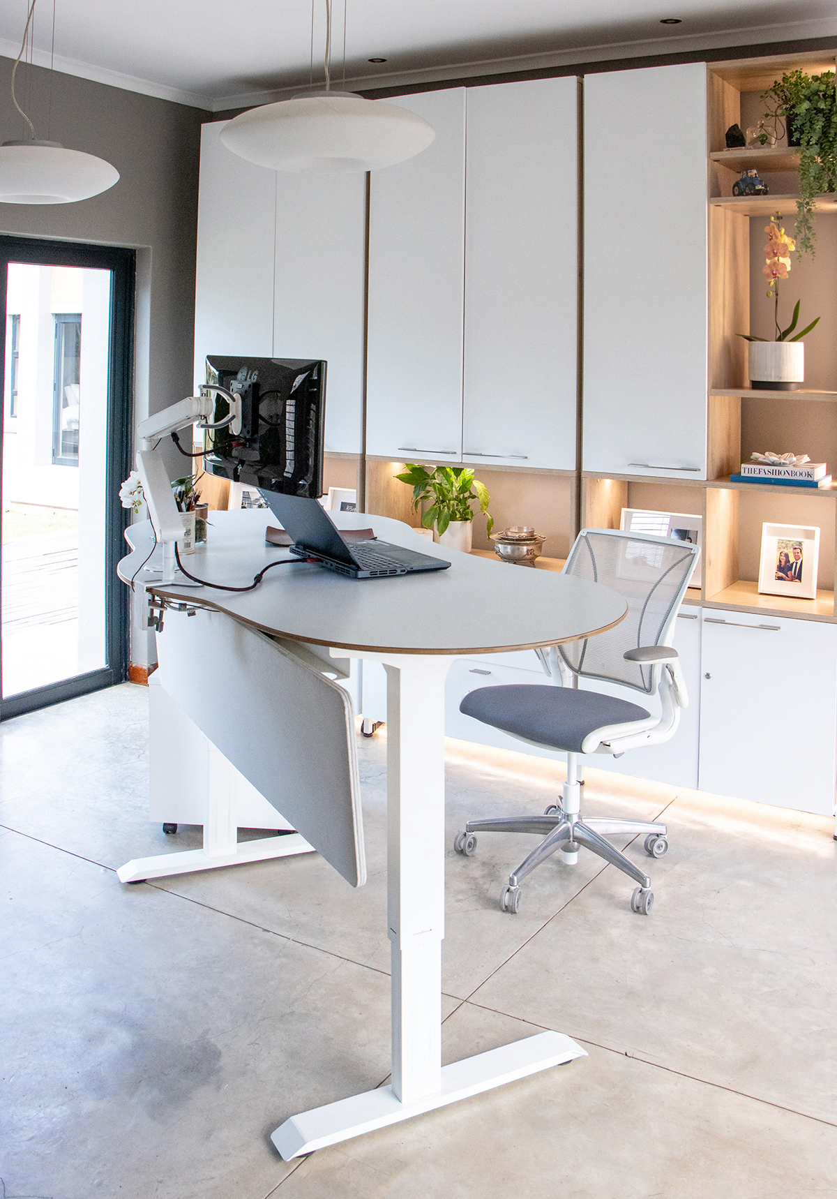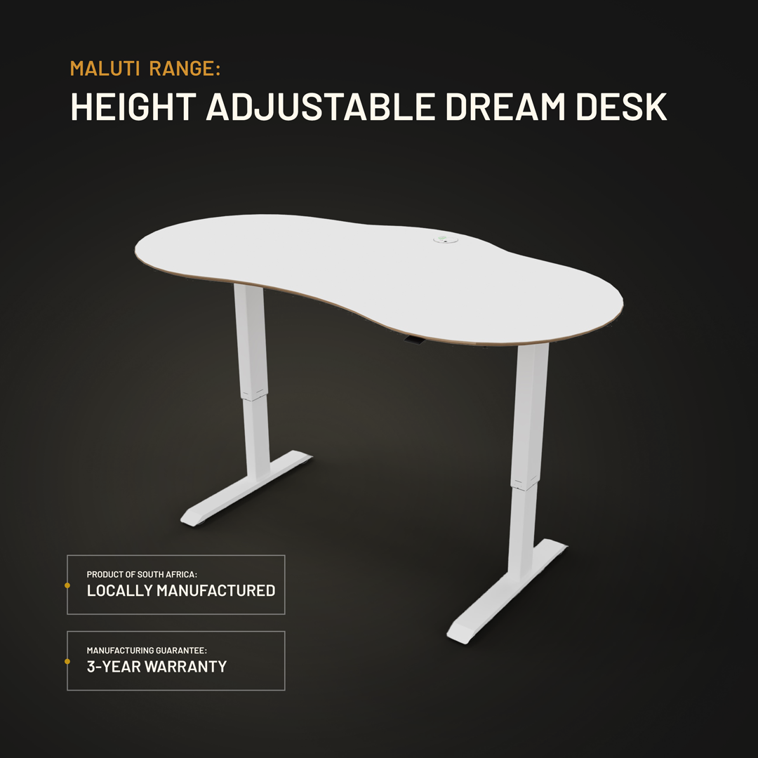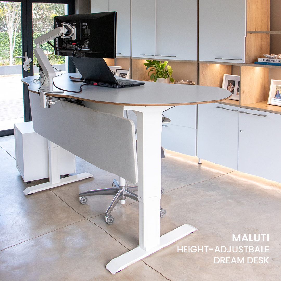The ultimate height-adjustable desk designed & manufactured in South Africa, shaped to the user, with elegant curves, and accommodating accessories. The height-adjustable Maluti desks are easy to customise to each user’s needs as they adjust from a sitting or standing position throughout the day, helping to support good blood circulation and reduce neck and back strain.