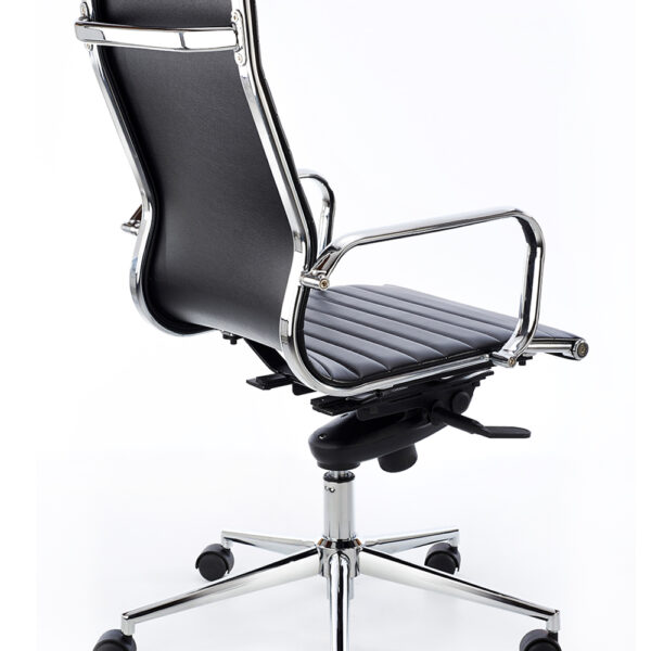 Seat and Backrest upholstered in highest quality genuine black bonded leather.