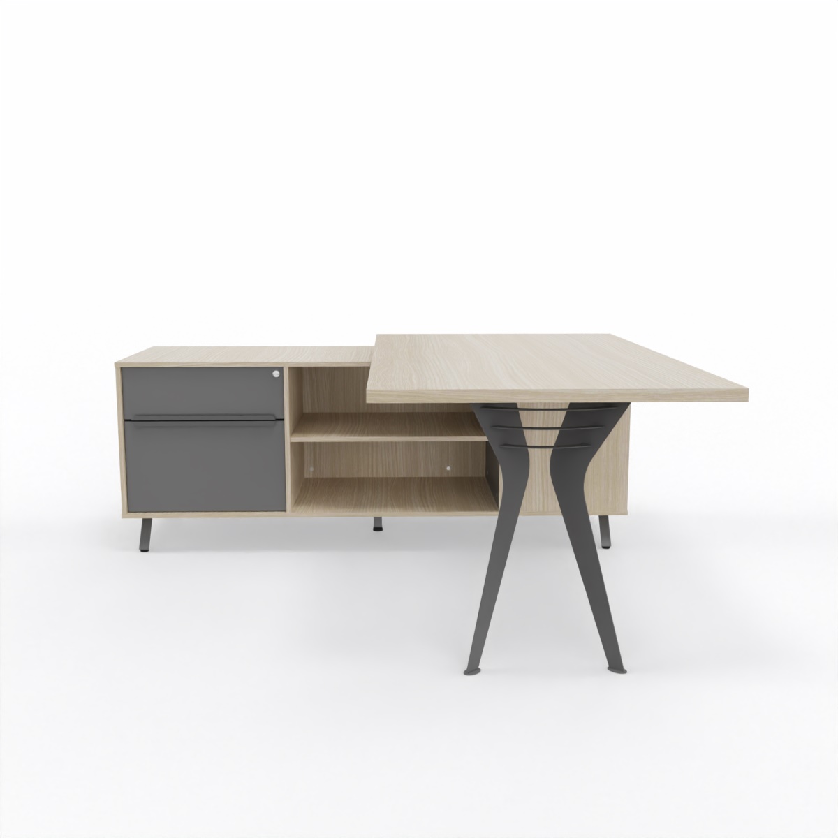 - 32mm Melamine top with a unique steel leg & lockable pedestal.