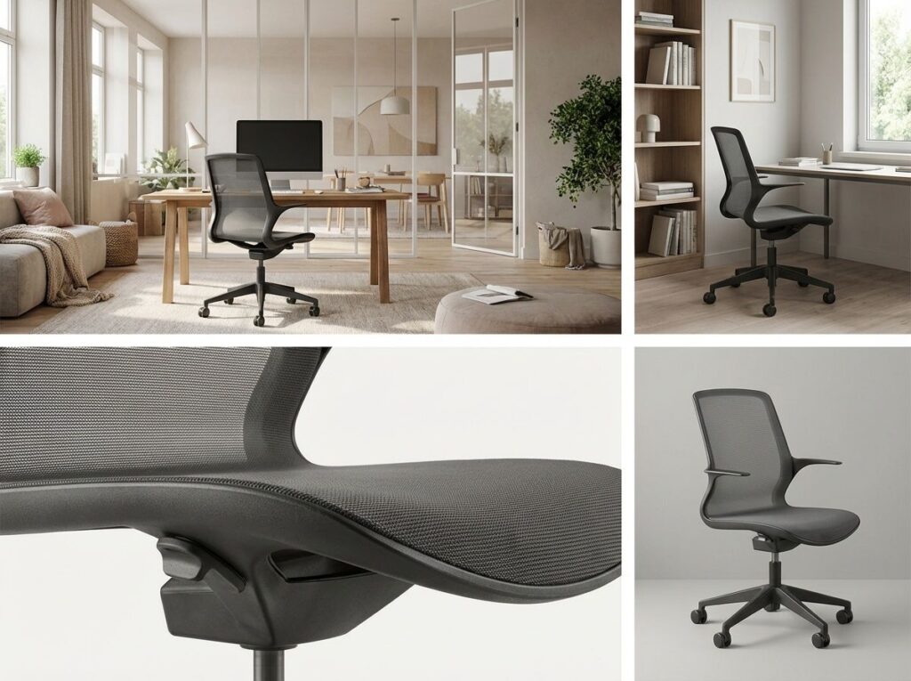 Ergonomic task chair comprising nylon shell structure with mesh insert on 5 star castor base with gas lift and locable tilt mechanism. Choice of Black with Black mesh or White with Grey mesh