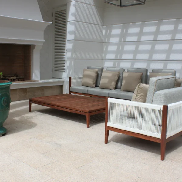 Scandinavian design centred around simplicity, beauty, and functionality. Manufactured in solid Iroko wood, robust slatted floating tongue and groove tops and traditional dowel jointed legs. All fittings are A316 Marine Grade Stainless Steel.